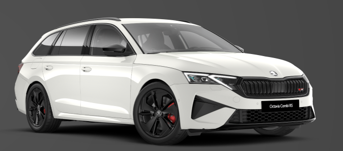 Innenausstattung Design Selections / Interieur RS: Sportsitze RS Stoff mit roten Ziernähten, LED-Ambientebeleuchtung: Armaturentafel, Vordertüren, Fußraum vorne/hinten, Einstiegsbeleuchtung vorne mit Skoda Schriftzug, Rücksitzlehnen mit Fernentriegelung, Kopfstützen vorne integriert, Armaturentafel-Mittelteil mit Neopren schwarz/rot, Dekor RS, Make-up-Spiegel mit LED-Beleuchtung (Fahrer- und Beifahrer-Sonnenblende), Luftausströmer mit schwarzem Rahmen, Dachhimmel schwarz, Pedale im Alu-Design