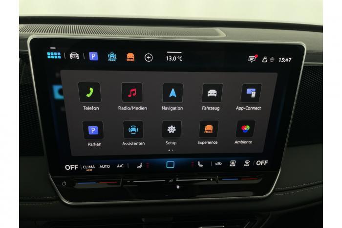 2 USB-C-Ladebuchsen an der Mittelkonsole hinten, 2 USB-C-Schnittstellen vorn, 8 Lautsprecher, App-Connect Wireless für Apple CarPlay und Android Auto, Digitaler Radioempfang DAB , Infotainment-Paket inkl. Navigationssystem Discover, Sprachbedienung, Telefonschnittstelle Comfort mit induktiver Ladefunktion, Touchscreen (32,2 cm/12,9 Zoll), 3D-LED-Rückleuchten, Abbiege- und Schlechtwetterlicht, Ambientebeleuchtung 10-farbig, Fahrlichtschaltung automatisch, mit LED-Tagfahrlicht sowie Begrüßungs- und Verabschiedungslicht, LED-Plus-Scheinwerfer, Leiste zwischen den Scheinwerfern und Rückleuchten sowie Türgriffmulden beleuchtet, Leuchtweitenregulierung dynamisch, Panorama-Ausstell-/Schiebedach mit Panoramadach hinten, Verbundsicherheitsglas geräuschdämmend für Türscheiben, Heck- und Seitenscheiben hinten abgedunkelt, Bedarfsorientierte Batterieladung, Innenspiegel automatisch abblendend, Mittelarmlehne vorn, Multifunktionslenkrad in Leder, beheizbar, mit Schaltwippen, Netztrennwand, Textilfußmatten vorn und hinten, Klimaanlage Air Care Climatronic mit Aktiv-Kombifilter, Bedienelementen hinten und 3-Zonen-Temperaturregelung, Design-Paket, Komfortpaket inkl. Memory-Funktion für Parkassistent, Paket Endless, Paket No Limit, Winterpaket inkl. Lenkrad beheizbar, 18 Leichtmetallräder Bologna in Schwarz, Oberfläche glanzgedreht, Tire Mobility Set: 12-Volt-Kompressor und Reifendichtmittel, Airbag für Fahrer und Beifahrer, mit Beifahrerairbag-Deaktivierung, Diebstahlwarnanlage mit Innenraumüberwachung, Back-up-Horn und Abschleppschutz, Elektronisches Stabilisierungsprogramm und elektromechanischer Bremskraftverstärker, ISOFIX-Halteösen für Kindersitze auf den äußeren Rücksitzen sowie auf dem Beifahrersitz, Kopf- und Seitenairbags vorn und hinten, Center-Airbag vorn, Notruf-Service, keine Registrierung notwendig, Dienst ist bei Auslieferung aktiviert, Wegfahrsperre elektronisch, Beifahrersitzlehne komplett umklappbar, Komfortsitze vorn, Rücksitzbank längs verschiebbar, -lehne asymmetrisch geteilt umklappbar, Neigung einstellbar, Vordersitze beheizbar, Vordersitze mit Höheneinstellung, Anschlussgarantie 3 Jahre / 100.000 km, 12-V-Steckdose im Gepäckraum, 230-V-Steckdose im Gepäckraum, 12-V-Steckdose in der Mittelkonsole vorn, Automatische Distanzregelung ACC, Berganfahrassistent, Digital Cockpit Pro, mehrfarbig, verschiedene Info-Profile wählbar, Elektronische Parkbremse inkl. Auto-Hold-Funktion, Fernlichtassistent Light Assist, Head-up-Display, Heckklappe mit sensorgesteuerter Öffnung und zeitverzögerter elektrischer Schließung, mit Fernentriegelung, Memory-Funktion für Parkassistent, Müdigkeitserkennung, Notbremsassistent Front Assist mit Fußgänger- und Radfahrererkennung, Parkassistent Park Assist inkl. Einparkhilfe, Regensensor, Reifenkontrollanzeige, Rückfahrkamera Rear View, Schlüsselloses Schließ- und Startsystem Keyless Access, Spurhalteassistent Lane Assist, Spurwechselassistent Side Assist, Umstellung Infotainment / Bordcomputer auf DE, Verkehrszeichenerkennung, Start-Stopp-System mit Bremsenergie-Rückgewinnung, Anhängevorrichtung anklappbar, mit elektrischer Entriegelung, inkl. Anhängerrangierassistent Trailer Assist, Außenspiegel elektrisch einstell-, anklapp- und beheizbar, Außenspiegelgehäuse und Türgriffe in Wagenfarbe, Dachreling silber eloxiert, EU-Fahrzeug mit Tageszulassung